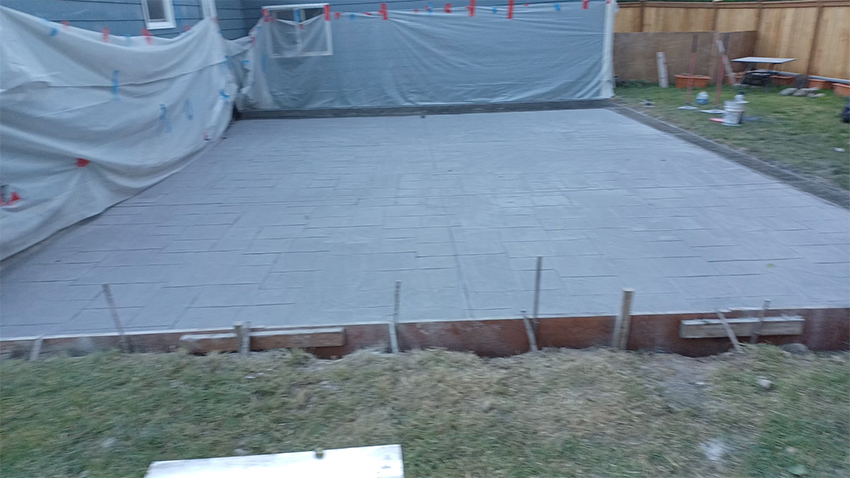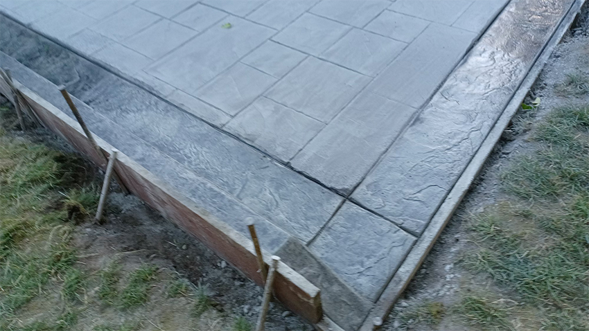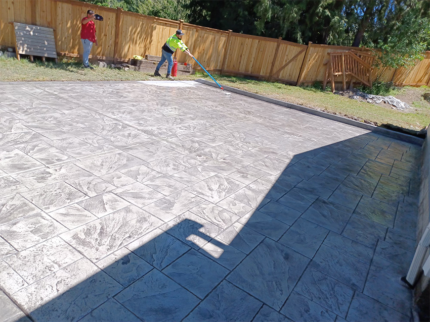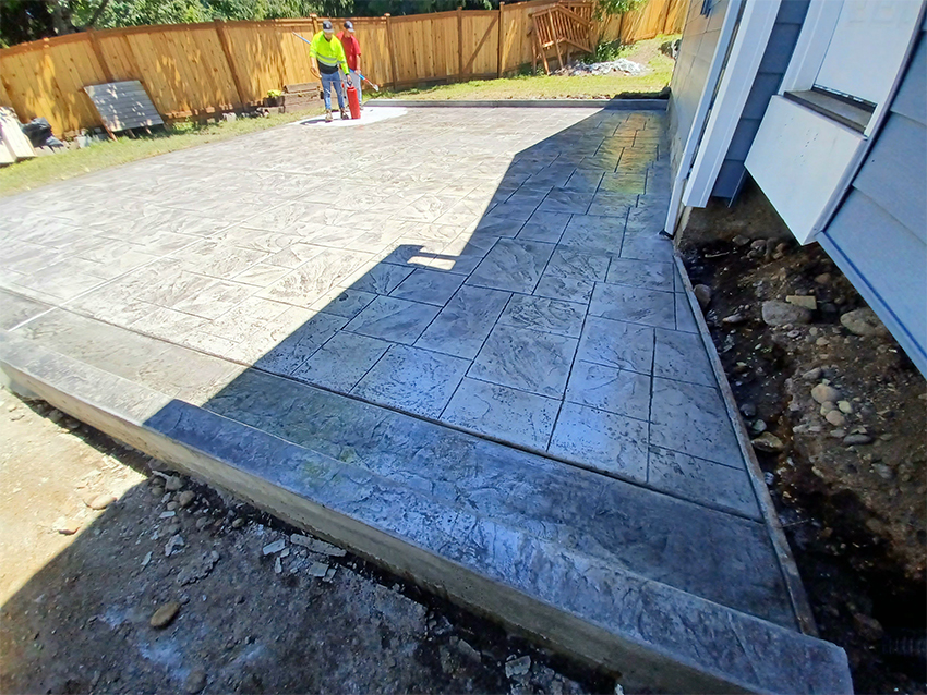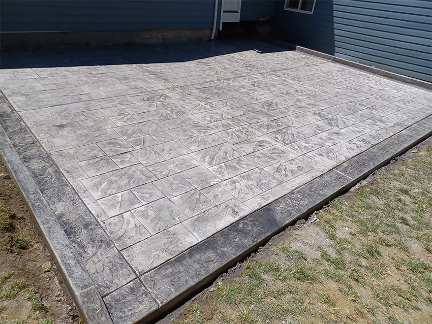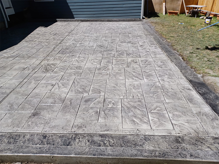 Large ashlar slate, color hardener with antique release for contrast and dark grey Roman slate borders.