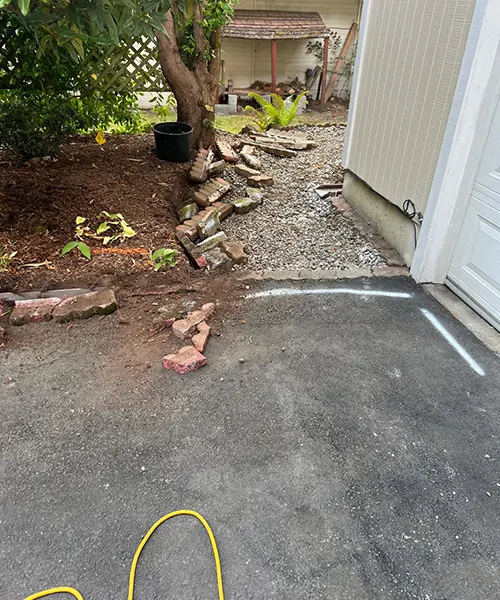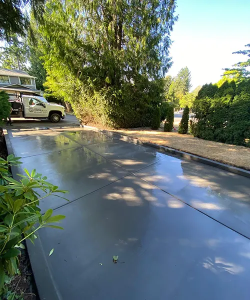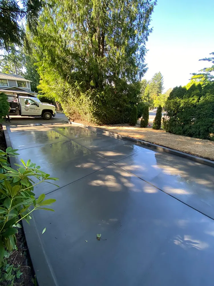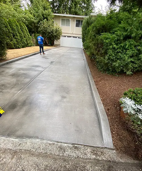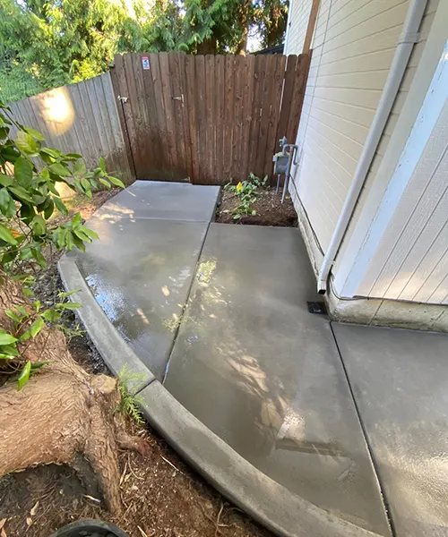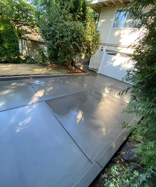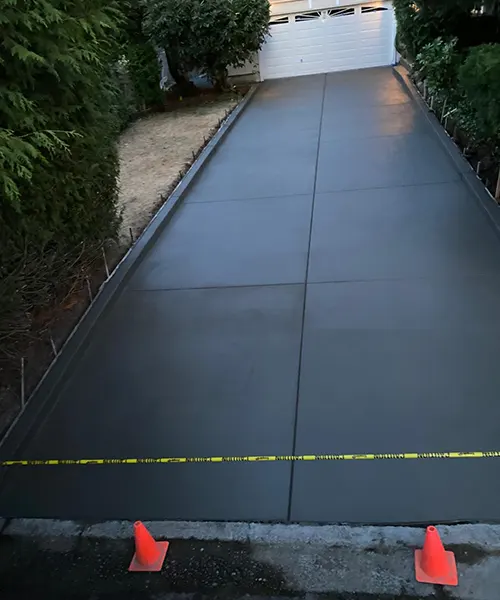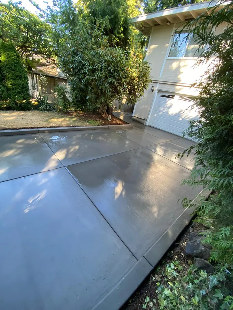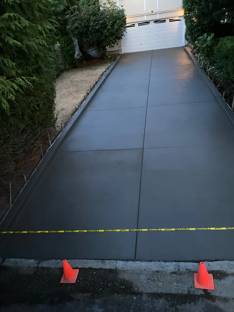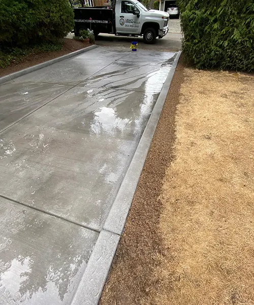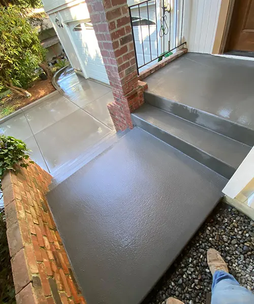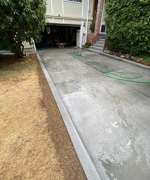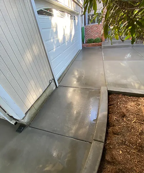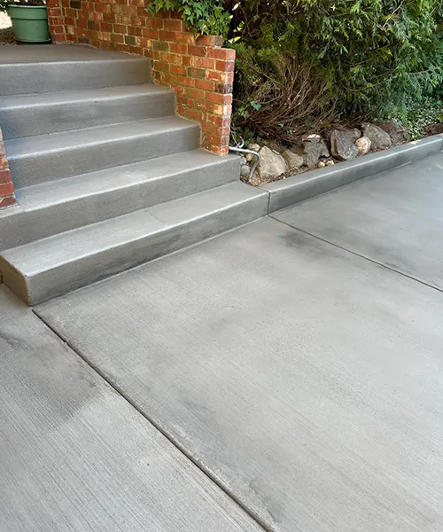 Broom Finish Driveway, Stairs System And Ret4. Aning Curbs. Integral Concrete Color