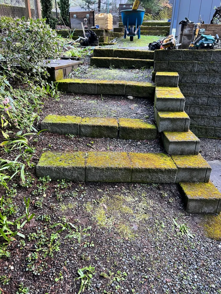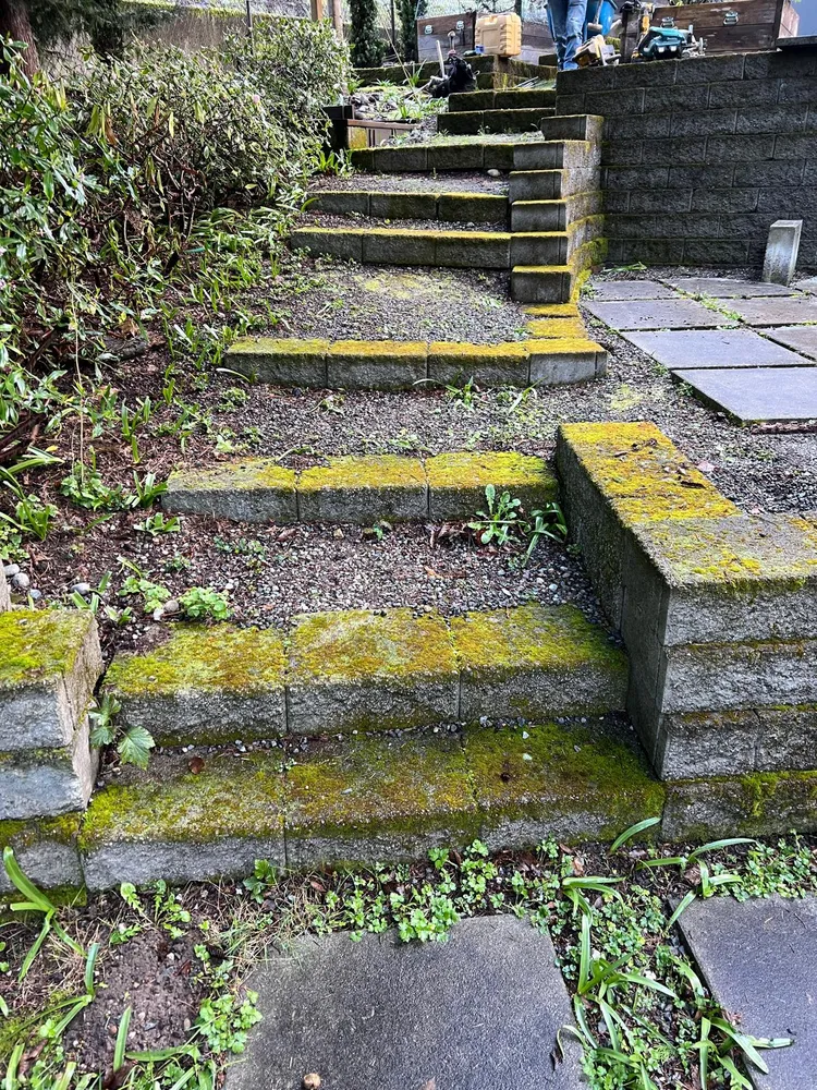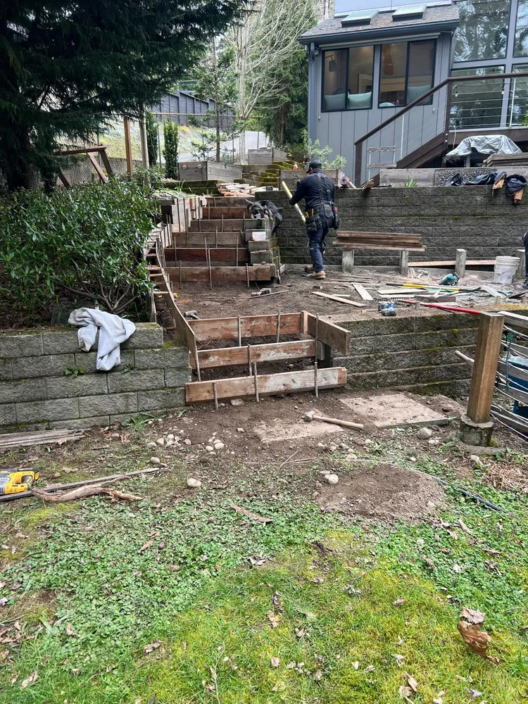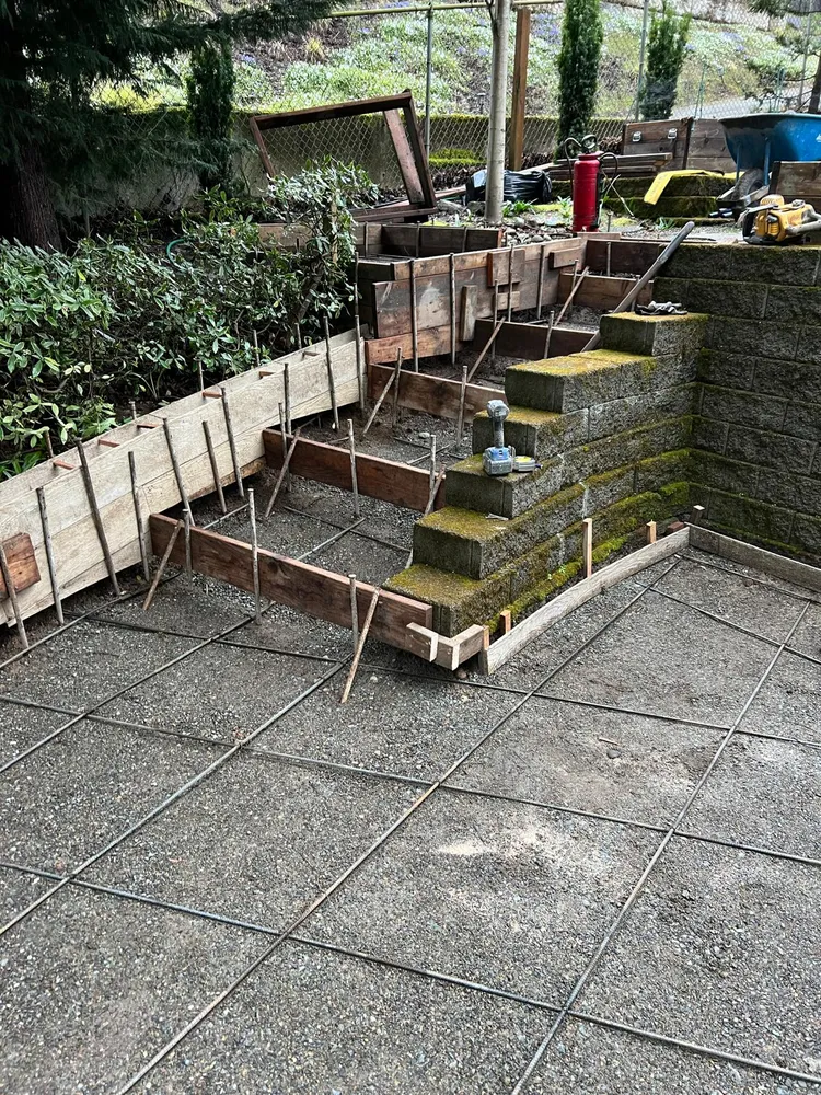 Broom Finish Steps ,retaining Wall And Patio, Integral Concrete Color